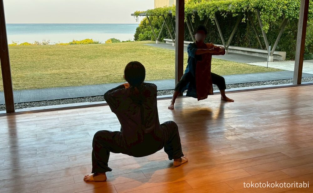 扉を開け放して、開放的な海の見える道場で朝から体を動かすのは気持ちいい♪