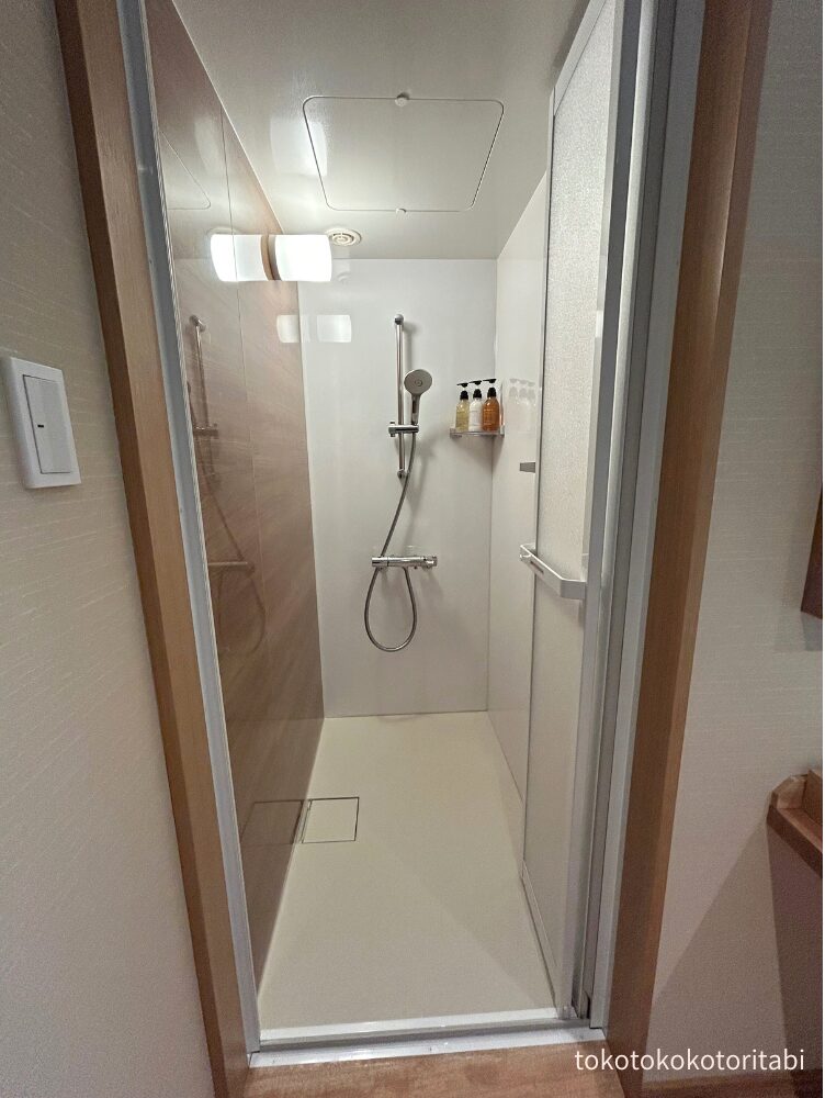 洗面台の隣にはシャワー室。大浴場を利用したので、こちらは使わず。