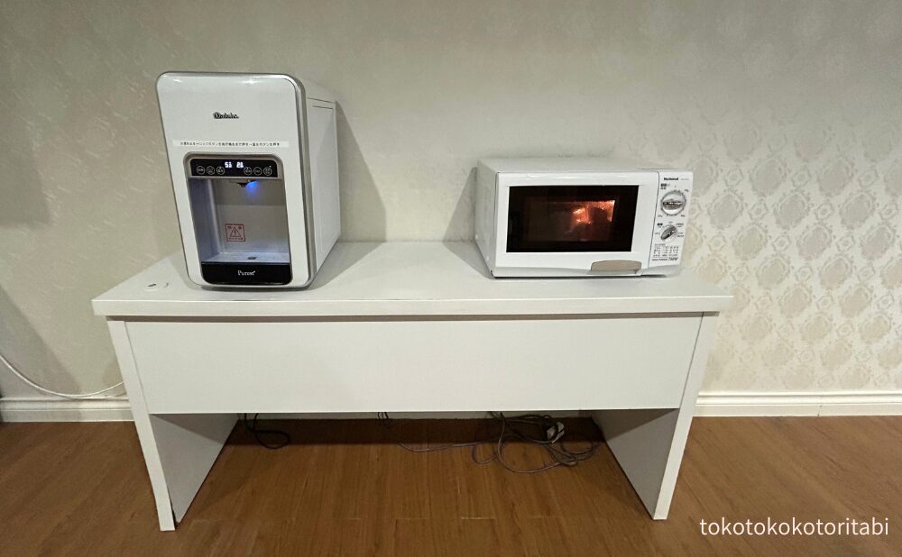 ウォーターサーバーもあるので、お部屋のジャグを持ってきて、ここで補充しました。